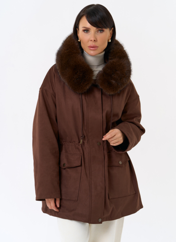 Отделка воротника - эко мех, цвет коричневый